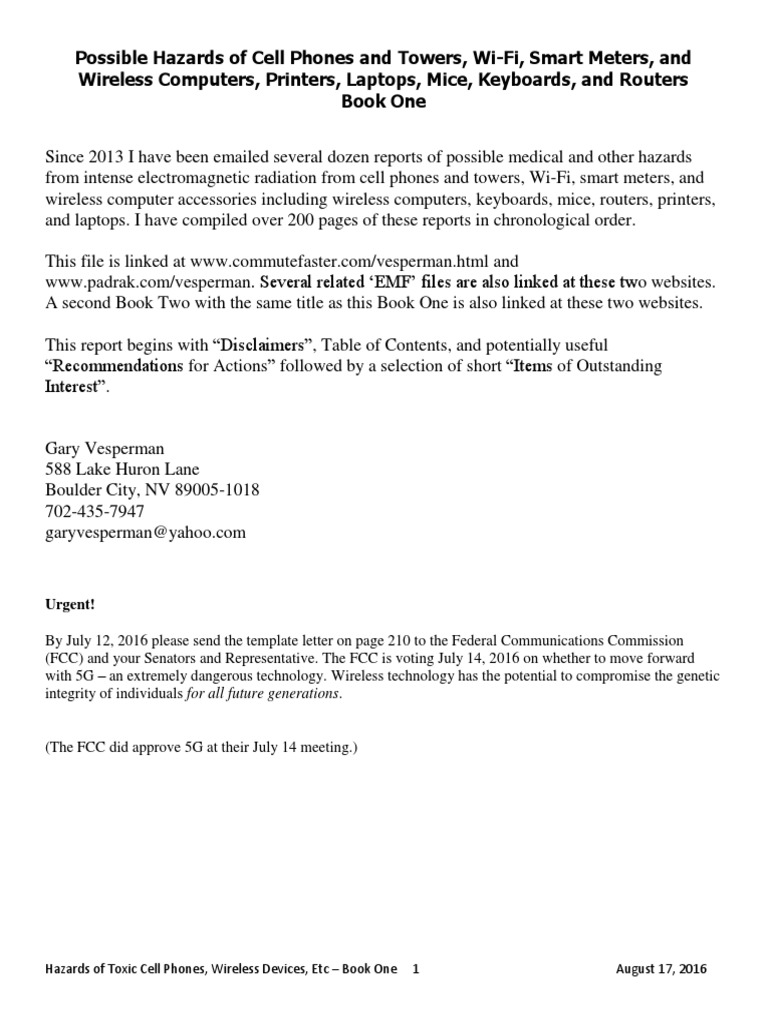 Medical Hazards Of Cell Phones Wi Fi Wireless Devices And Smart Meters 8 17 16 Pdf Pdf Wi Fi Microwave
